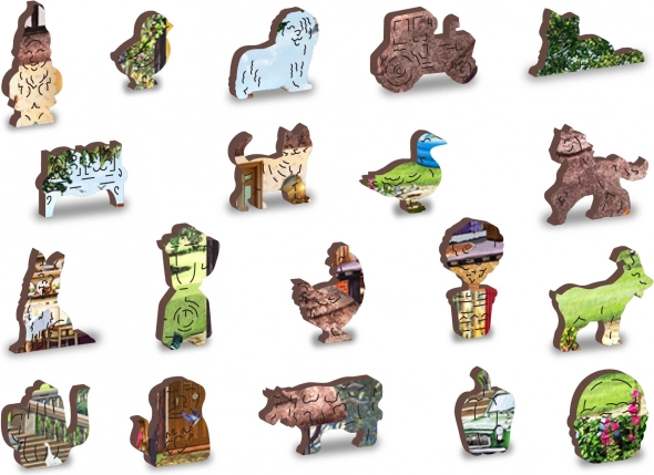 Te stylowe drewniane puzzle oferują dwa wyzwania: od strony frontowej układasz według kolorowego obrazka, a od spodu według powtarzającego się wzoru. Wśród 505 elementów znajdziesz około 50 unikalnie kształtowanych, które mogą stać samodzielnie jak małe figurki. Dzięki precyzyjnej obróbce laserowej krawędzie są gładkie i bezpieczne.