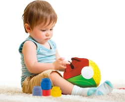 Zabawa z piłką i klockami Clemmy wspiera zdolności manualne i koordynację ruchową dzieci.