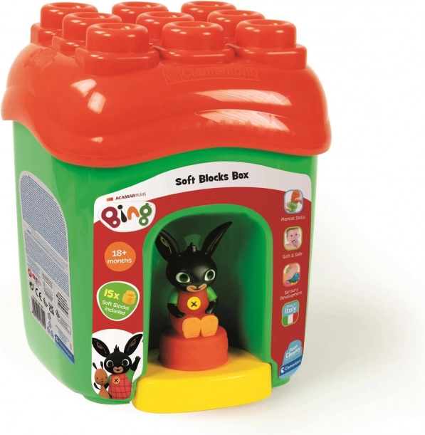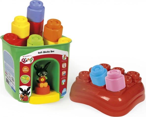 - 15 miękkich klocków, 1 figurka BING, 1 plastikowe pudełko z wieczkiem