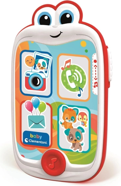 Interaktywny smartfon CLEMENTONI BABY to zabawka dla dzieci inspirowana smartfonami dla dorosłych. Oferuje mnóstwo bodźców świetlnych i dźwiękowych, które zachęcają do odkrywania i wspierają pierwszą naukę poprzez zabawę. Dzięki czterem dużym przyciskom i klawiszowi muzycznemu dzieci łatwo włączą melodie i głosy trzech zwierzątek – pieska, kotka i ptaszka.