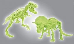Fluorescencyjne części szkieletu pochłaniają światło dzienne i świecą w ciemności. Gotowe modele T‑Rexa i Triceratopsa to efektowna dekoracja i pomoc edukacyjna.