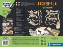 Ten edukacyjny zestaw z serii Science & Play zapewnia autentyczne doświadczenie badań paleontologicznych. W bloku „skały” znajdziesz części dwóch szczegółowych szkieletów, które za pomocą młoteczka i dłutka ostrożnie uwolnisz, a następnie złożysz w imponujące modele. Specjalny materiał fluorescencyjny pochłania światło dzienne i świeci w ciemności, co potęguje efekt wow i motywuje do dalszych odkryć.