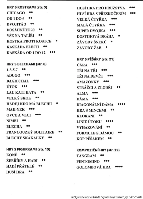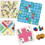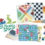 Na pięciu dwustronnych planszach znajdziesz między innymi Koniki, Warcaby, Gęsią grę, Węże i drabiny, Pchli tor wyścigowy, Owce i wilki, Linię, Adugo, Tor wyścigowy, Kaskadę pcheł, Bagh Chal, Lau Kati Kata, a także łamigłówki logiczne Pentamimo i Tangram. Dzięki różnym poziomom trudności zestaw świetnie sprawdzi się dla dzieci i dorosłych.