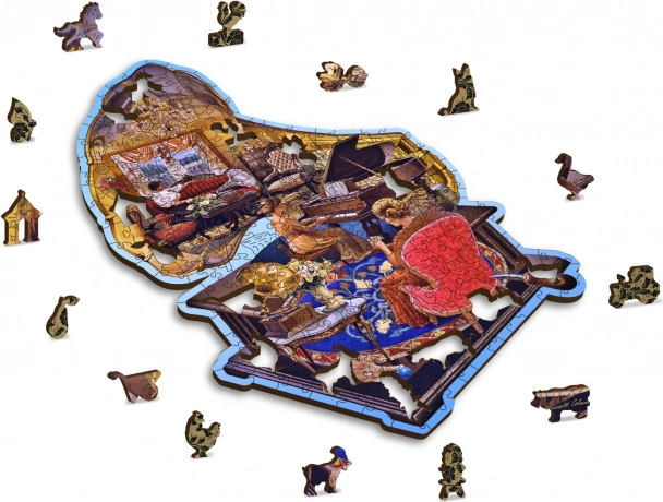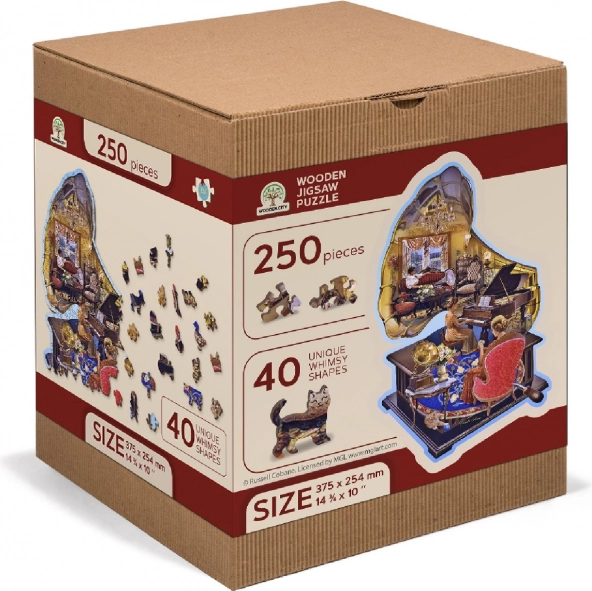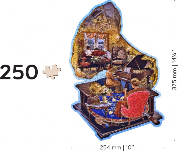 Odkryj piękno ręcznie ilustrowanej sceny z gramofonem i pianinem w premium drewnianych puzzlach, które oferują 40 oryginalnych elementów „whimsy” w kształcie zwierząt, laserową precyzję bez drzazg oraz ekologiczne opakowanie bez plastiku. Z wyższym poziomem trudności i solidnym materiałem HDF to idealny prezent i wyzwanie dla miłośników designerskich puzzli.