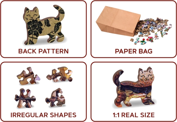 Te designerskie drewniane puzzle w kształcie pianina z vintage motywem przytulnego saloniku z gramofonem zachwycą każdego, kto kocha elegancką sztukę i sprytne układanki. Dzięki cięciu laserowemu i gładkim krawędziom oraz solidnej płycie HDF elementy perfekcyjnie się łączą i pozostają odporne nawet przy częstym układaniu.