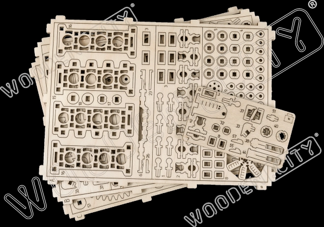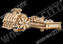 Model wykonano z wysokiej jakości sklejki brzozowej i składa się go bez kleju ani specjalnych narzędzi. Dla optymalnego działania zaleca się woskowanie osi i kół zębatych. Poziom trudności jest średni (3/5), więc nadaje się dla cierpliwych początkujących i zaawansowanych modelarzy.
