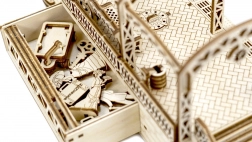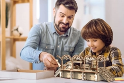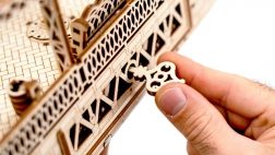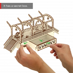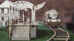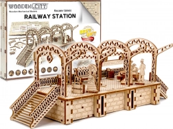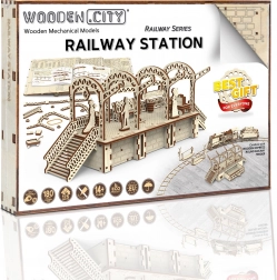 Drewniane puzzle 3D WOODEN CITY stacja kolejowa oddają autentyczną atmosferę dworca z dekoracyjnymi łukami, ławkami i figurkami pasażerów. Montaż odbywa się bez kleju i narzędzi, poszczególne elementy dokładnie do siebie pasują, a gotowy model jest nie tylko dekoracyjny, ale i funkcjonalny – drobiazgi łatwo ukryjesz w tajnej przegródce.