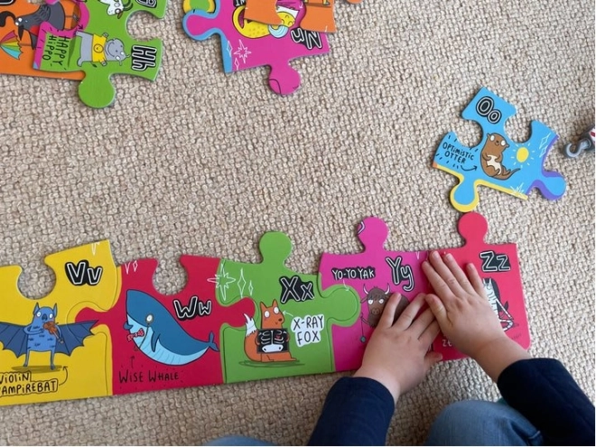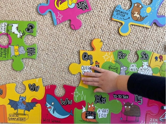 Puzzle pomagają rozwijać małą motorykę, zdolności poznawcze i jednocześnie dostarczają praktycznej nauki angielskiego alfabetu.