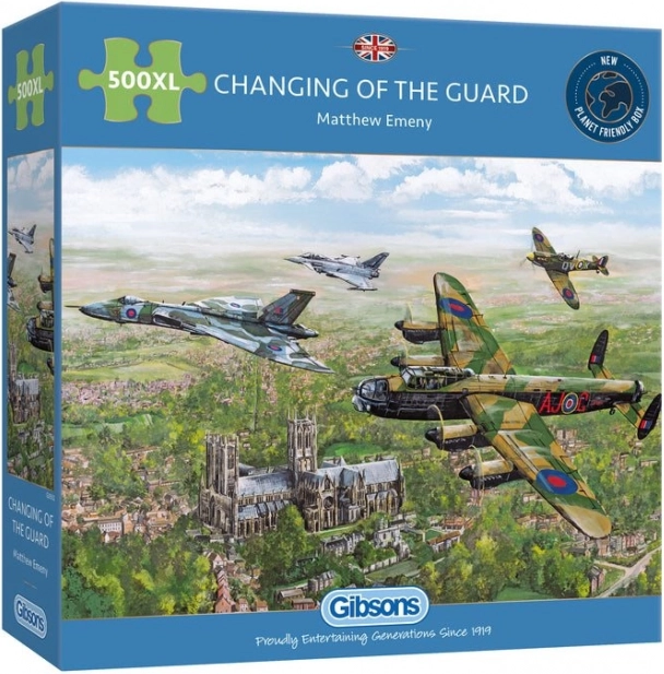 Zanurz się w historii brytyjskich sił powietrznych z tym unikalnym puzzlem Zmiana Warty. Zawiera 500 elementów i uchwyca moment, kiedy słynne samoloty RAF przelatują nad ikoniczną katedrą w Lincoln.