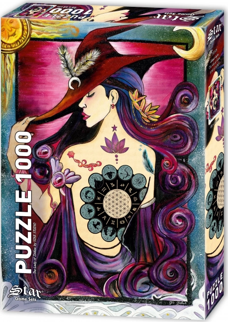 Ciesz się godzinami zabawy dzięki temu wspaniałemu puzzle z tematem Dama zodiaku, które zawiera 1000 elementów. Świetny sposób na ćwiczenie cierpliwości oraz precyzyjnych umiejętności manualnych.