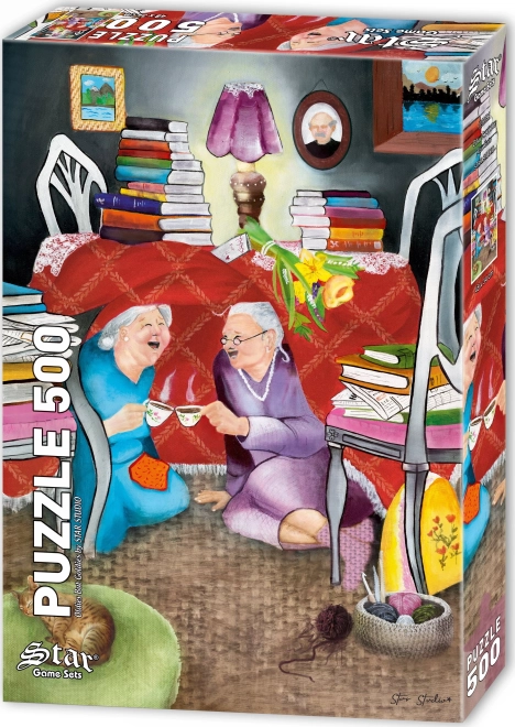 Popularne puzzle z motywem złotych babć oferują przyjemne wyzwanie dla początkujących i zaawansowanych. Dzięki 500 elementom i kompaktowym wymiarom po ułożeniu ok. 34 × 48 cm są idealne na wieczorny odpoczynek i wspólne układanie z rodziną.