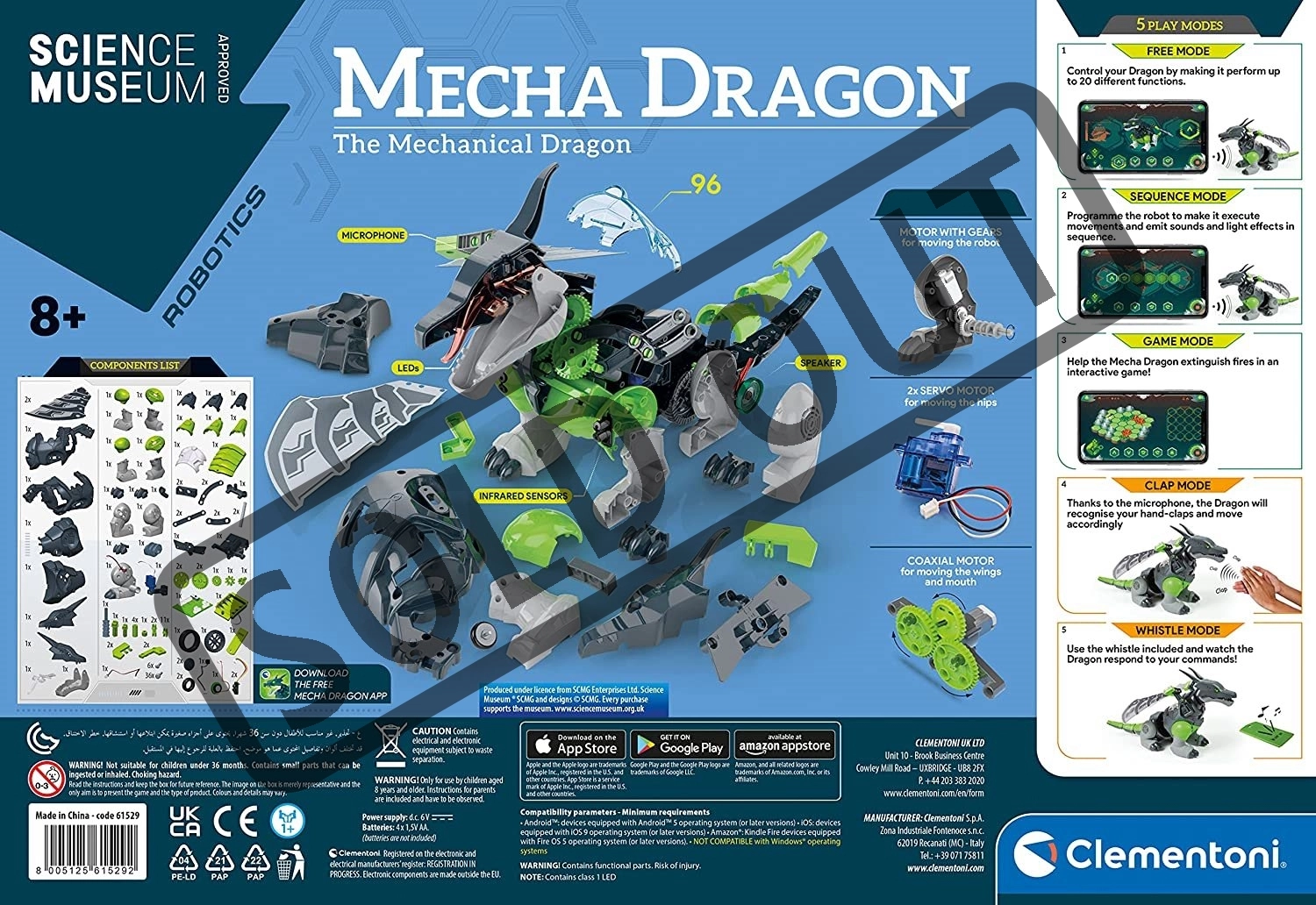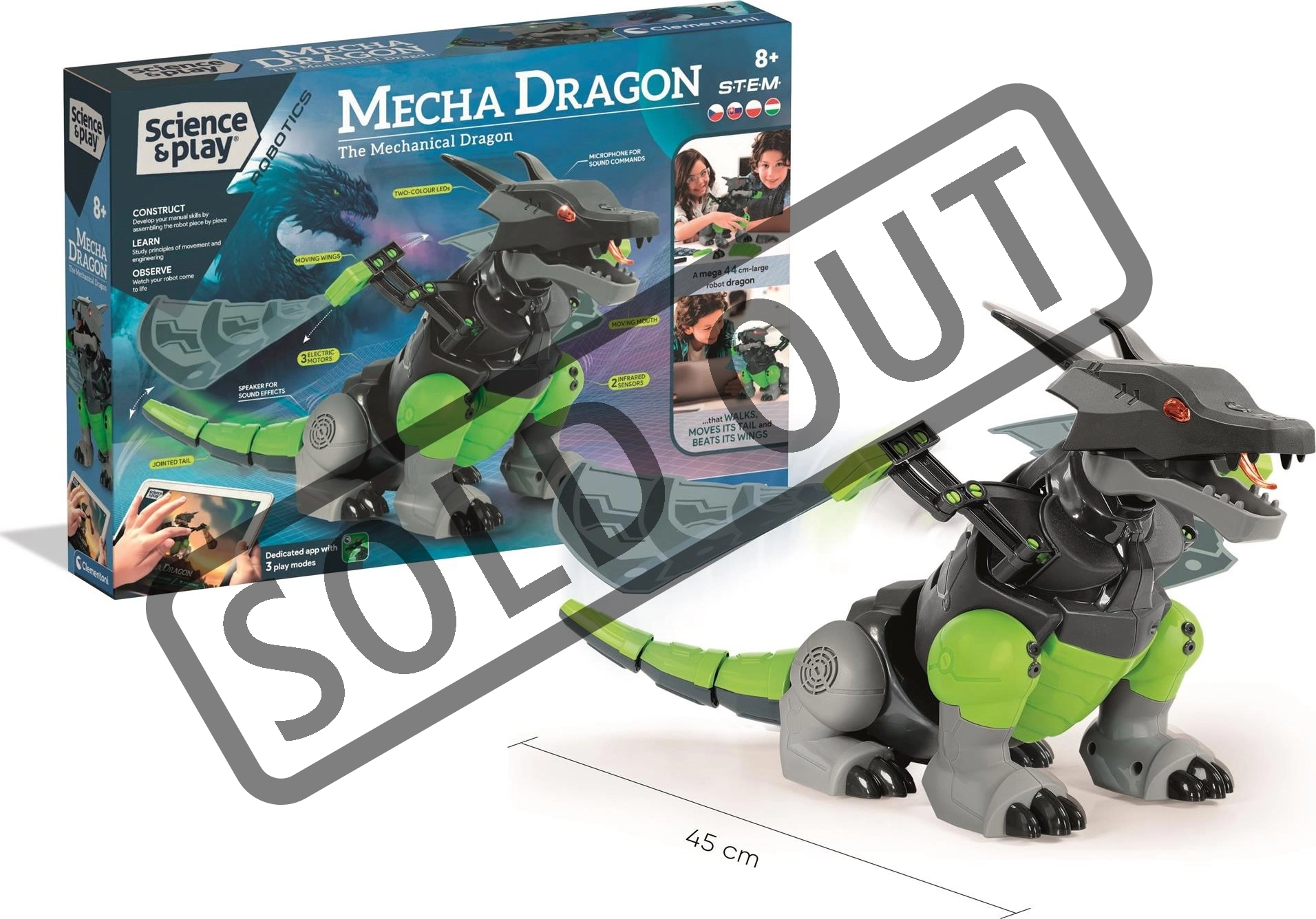 Zbuduj własnego robotycznego smoka i przeżyj przygodę z nowoczesną zabawką STEM od CLEMENTONI. Mecha Dragon ma 44 cm długości, składa się z 96 elementów i oferuje 3 tryby gry oraz aż 22 funkcje. Dzięki inteligentnym czujnikom i trzem silnikom realistycznie kroczy, macha skrzydłami, otwiera paszczę, obraca się i ściga „zdobycz” jak żywy.