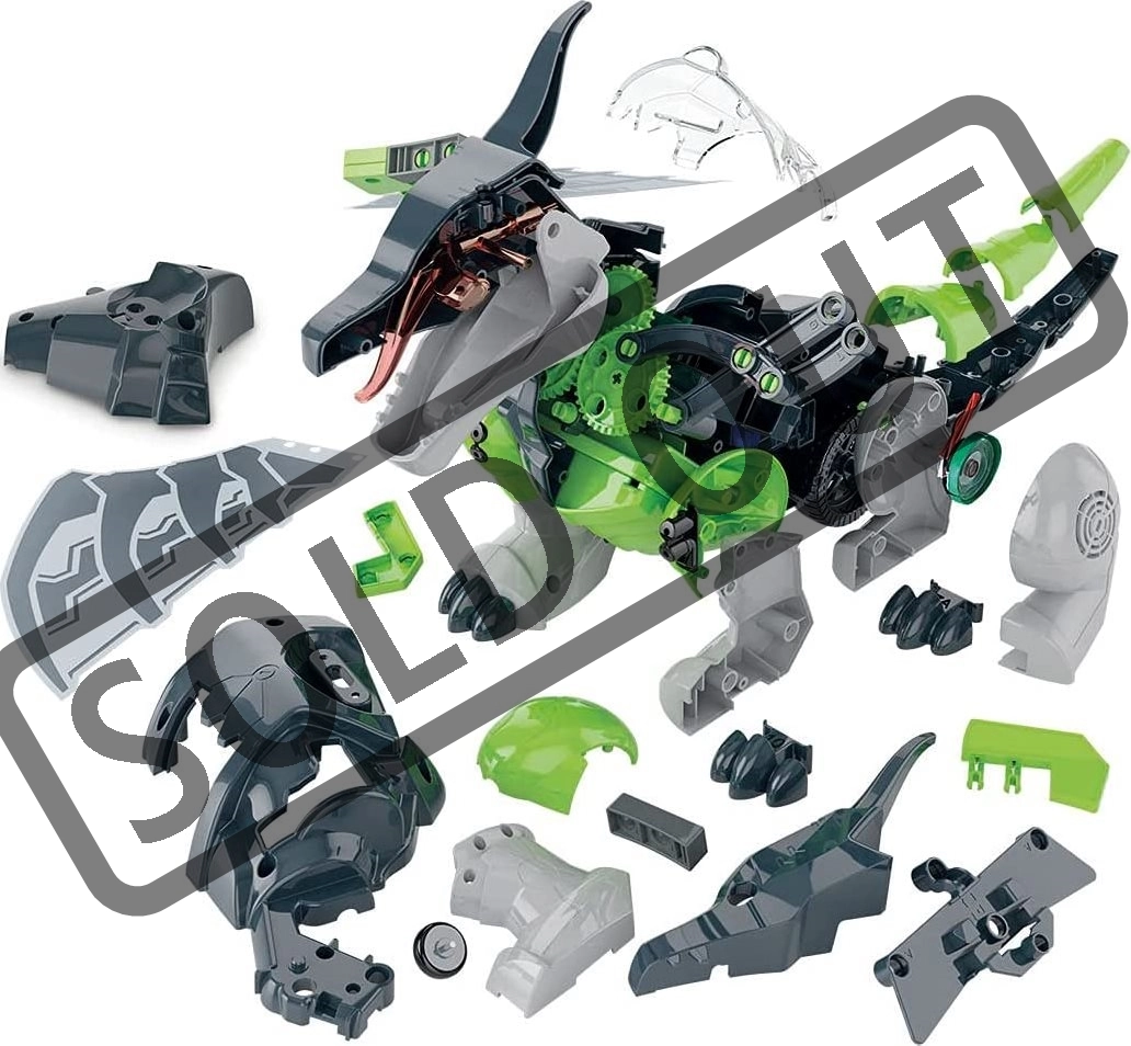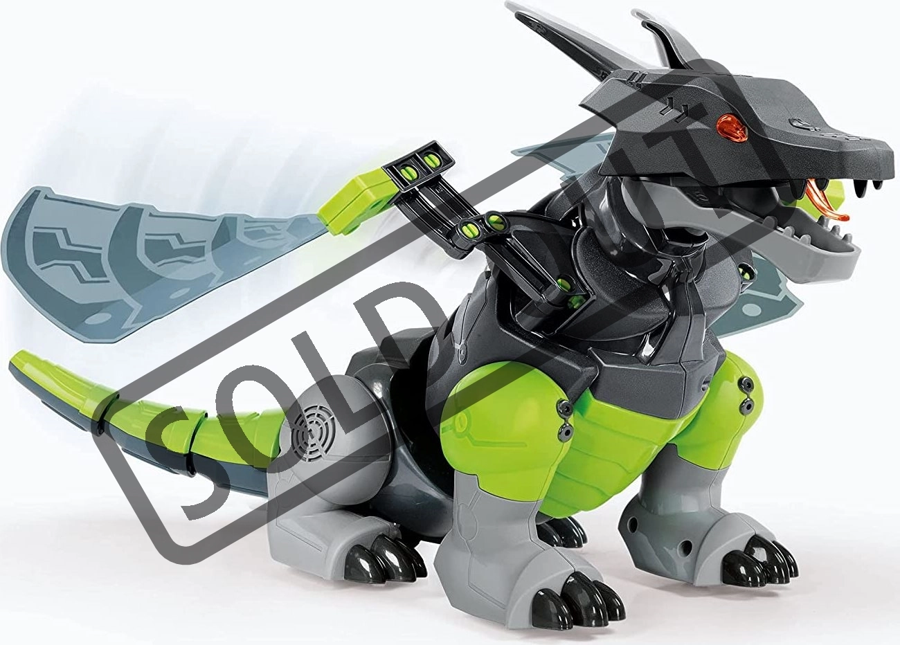 - Solidna konstrukcja: 96 elementów, 3 silniki (2 do skrzydeł i paszczy, 1 serwomotor do napędu i przegubu tułowia).