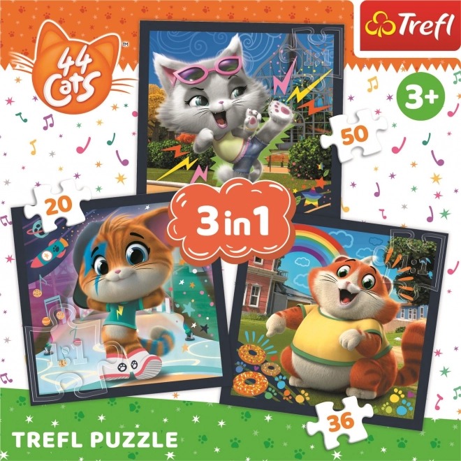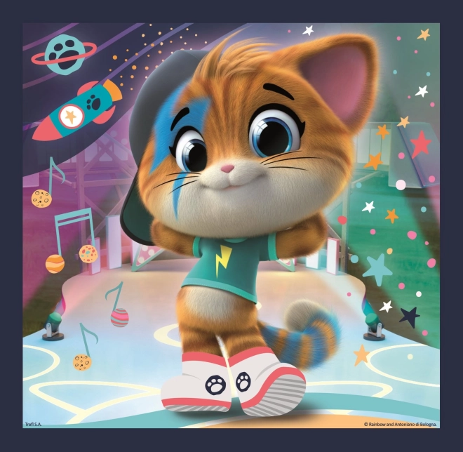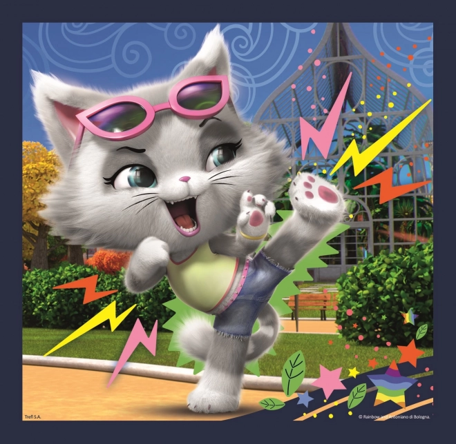 Odkryj magię układanek z bohaterami z popularnej bajki 44 CATS. Zestaw zawiera trzy różne puzzle, dzięki którym dzieci ćwiczą motorykę małą, spostrzegawczość i cierpliwość. Różna liczba elementów pozwala dopasować poziom trudności do wieku i doświadczenia dziecka.