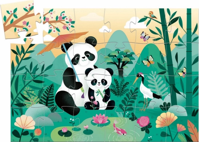 Piękne puzzle z motywem pandy i jej mamy, które zainteresują dzieci i dorosłych. Ułożony obrazek ma wymiary 42 x 30 cm.