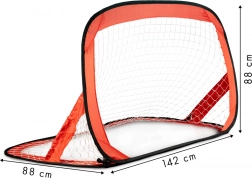 Boczne rękawy na pręty wzmacniające usztywniają ramę, a mocna siatka pewnie wyłapuje celne strzały. Bramki są lekkie, kompaktowe i łatwe w przenoszeniu, dlatego świetnie nadają się do gry w ogrodzie, treningu i towarzyskich meczów.
