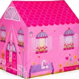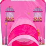 Namiot dla dzieci z tunelem z motywem różowego domku.