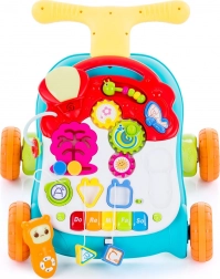 Przemyślany pchacz do prowadzenia jest idealny dla dzieci, które potrafią już samodzielnie chodzić. Stabilna podstawa i lekka konstrukcja dają pewność przy pierwszych krokach, a żywe kolory i dźwięki stymulują wzrok, słuch i ciekawość. W kilka chwil zabawkę zamienisz w samodzielny stolik zabaw do odkrywania i kreatywnej zabawy.