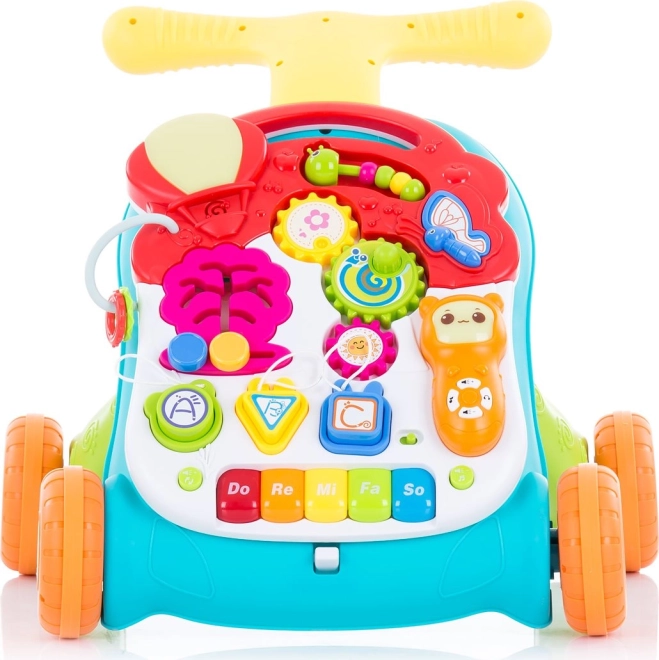 Jedna zabawka, dwie możliwości. Maluchy trenują chodzenie z pewnością, a po przemianie zyskują samodzielny stolik do odkrywania przycisków, kółek i klawiszy.