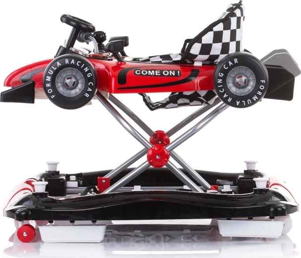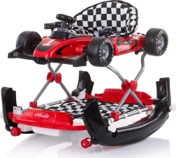 Wielofunkcyjny chodzik 4w1 dla dzieci od 6 miesięcy do 12 kg wspiera pierwsze kroki, równowagę i koordynację. Oferuje tryby chodzik, bujaczek, centrum zabaw oraz pchacz. Ma szeroką podstawę dla stabilności, 3 poziomy wysokości, 6 ograniczników zapobiegających upadkowi oraz odpinany panel w kształcie bolidu z dźwiękami i światłami.