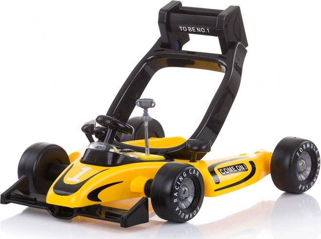CHIPOLINO Car Racer 4w1 to sprytnie zaprojektowany chodzik, który rośnie wraz z dzieckiem. Dzięki trzem poziomom regulacji wysokości, szerokiej podstawie i sześciu blokadom bezpieczeństwa zapewnia pewność podczas odkrywania przestrzeni. Zabawny panel w kształcie bolidu można łatwo odpiąć i zamienić w pchacz–autko, które zachęca do dalszego ruchu.