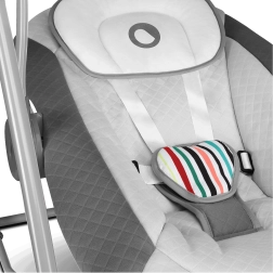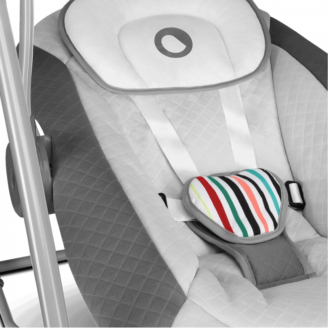 Bezpieczeństwo gwarantuje solidna stalowa rama i 5‑punktowe pasy, a komfort miękkie, odpinane wypełnienie z elementami nadającymi się do prania ręcznego oraz poduszeczka dla prawidłowego podparcia główki. Praktyczny timer, pięć poziomów kołysania oraz zasilanie przez USB lub baterie zapewniają maksymalną elastyczność w każdym domu.