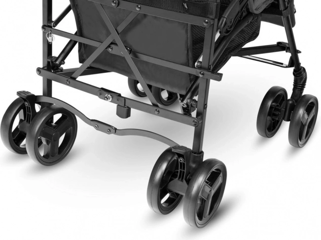 - Płynna jazda: duże koła EVA, blokada przednich kół dla lepszej sterowności.