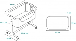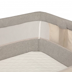 Regulowana wysokość w 5 krokach umożliwia precyzyjne wyrównanie z łóżkiem, a opcja nachylenia materaca zwiększa komfort przy katarze lub refluksie. Przewiewna siateczka poprawia wentylację i widoczność dziecka. Stabilna konstrukcja została przetestowana przez TÜV SÜD i SGS zgodnie z normami EN 1130 i EN 16890.