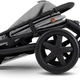 Duże piankowe koła EVA poradzą sobie zarówno z miejskimi chodnikami, jak i nierówną nawierzchnią. Przednie koła z możliwością blokady oraz miękkie zawieszenie ułatwiają manewrowanie. Bezpieczeństwo zwiększają 5‑punktowe pasy z miękkimi osłonkami, odpinany pałąk i elementy odblaskowe. Wózek spełnia normę EN 1888 i został przetestowany przez niezależne laboratorium Intertek.