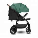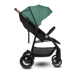 Bezpieczeństwo zapewniają 5‑punktowe pasy oraz odpinana barierka, która wyznacza przestrzeń dla dziecka i ułatwia wsiadanie. Płynna, bezstopniowa regulacja oparcia aż do pozycji leżącej oraz regulowany podnóżek dbają o ergonomiczną pozycję. Duże koła EVA z pełną amortyzacją tłumią nierówności, obrotowe przednie koła (360°) można zablokować do jazdy na wprost, a hamulec centralny zwiększa pewność przy zatrzymaniu.