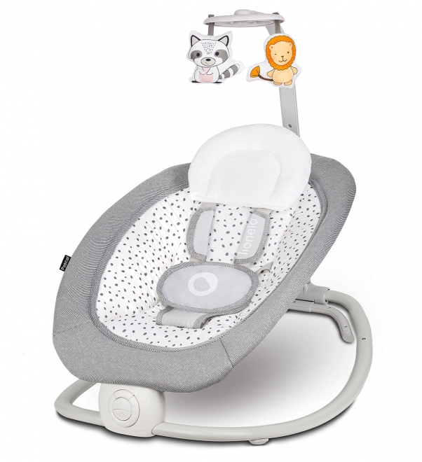 Leżaczek LIONELO Pascal zapewnia dzieciom komfort, a rodzicom spokój. Miękkie wyściełanie z odpinaną poduszeczką podpierającą główkę oraz mechanizm bujania i wibracje delikatnie uspokajają maluszka. O rozrywkę dbają interaktywne zabawki z efektami oraz odtwarzanie 12 melodii z regulacją głośności.