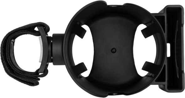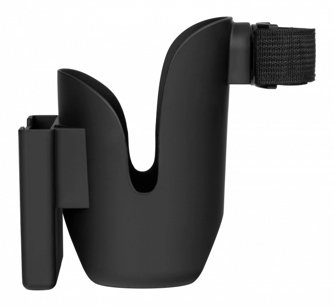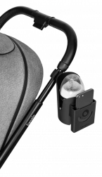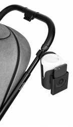 - Uchwyt wyposażony jest w uniwersalny system mocowania 360° i stabilny pasek na rzep, który można zamocować na dowolnej rączce wózka pod dowolnym kątem.