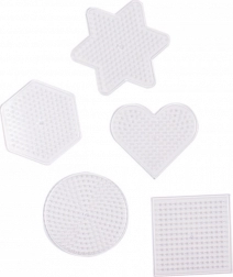 Odkryj zabawne i kreatywne tworzenie z zestawem przezroczystych podkładek PLAYBOX do koralików do zaprasowywania. Pięć podstawowych kształtów – kwadrat, kółko, serce, gwiazda i sześciokąt – oferuje szerokie możliwości układania prostych i bardziej złożonych obrazków. Przezroczysty materiał umożliwia łatwe korzystanie z szablonów, dzięki czemu dzieci mogą dokładnie odwzorowywać motywy oraz rozwijać motorykę małą i cierpliwość.