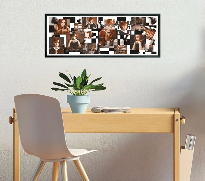 Przeżyj napięcie i strategię serialu Gambit Królowej z tym pięknym panoramicznym puzzlem od CLEMENTONI, który zawiera 1000 elementów.