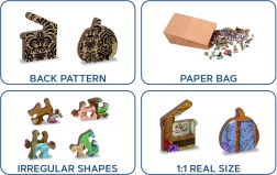 Dwustronny design pozwala układać puzzle według obrazka lub według wzoru na tylnej stronie, a dzięki precyzyjnej obróbce laserowej zapewnia gładkie krawędzie bez drzazg. Ekologiczne wykonanie w papierowym opakowaniu bez plastiku sprawia, że będziesz czuć się dobrze nie tylko podczas układania, ale też z perspektywy zrównoważonego stylu życia.