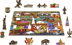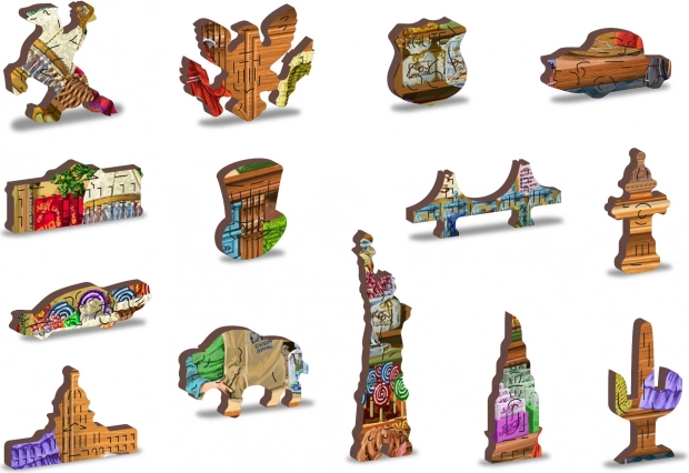 30 unikalnie kształtowanych elementów przedstawia znane budowle, zwierzęta lub przedmioty, co nadaje puzzlom wyjątkowości i podnosi poziom trudności.
