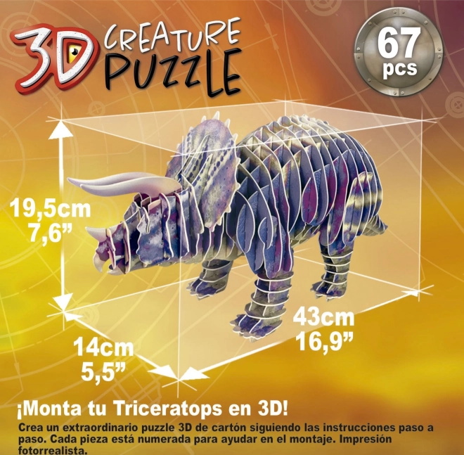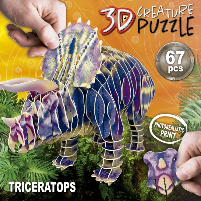 Zbuduj własny prehistoryczny świat z 3D modelem triceratopsa z wytrzymałej tektury. Bez nożyczek i kleju, z fotorealistycznym nadrukiem i 67 precyzyjnie wyciętymi elementami układanie jest przyjemne i czyste. Wspiera zręczność, wyobraźnię i koncentrację i nadaje się do wielokrotnego składania.