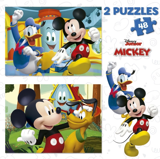 Dziecięce puzzle EDUCA z motywem MYszki Miki oferują dwa oddzielne układanki po 48 elementów dla radosnej zabawy i rozwoju umiejętności. Idealne dla dzieci, które kochają postacie Disneya i chcą ćwiczyć cierpliwość, logikę oraz małą motorykę. Każde puzzle po ułożeniu ma wymiary około 28 × 20 cm.