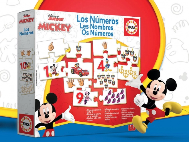 Zabawne i edukacyjne puzzle dla najmłodszych z motywami z ulubionego serialu MICKEY I PRZYJACIELE. Zestaw zawiera dziesięć oddzielnych obrazków po cztery elementy, które pomagają dzieciom uczyć się liczb od 1 do 10. Wspiera koordynację oko–ręka, logiczne myślenie oraz rozpoznawanie kolorów i przedmiotów.