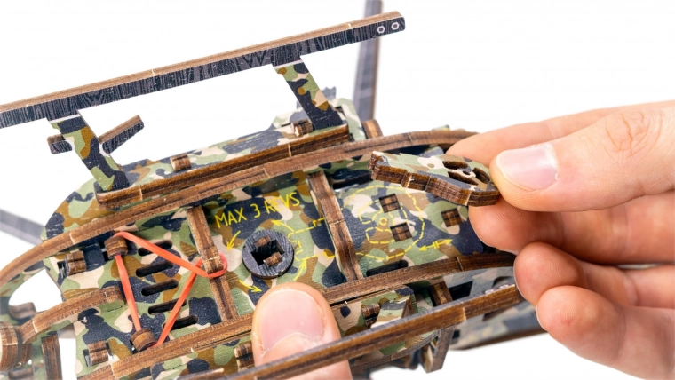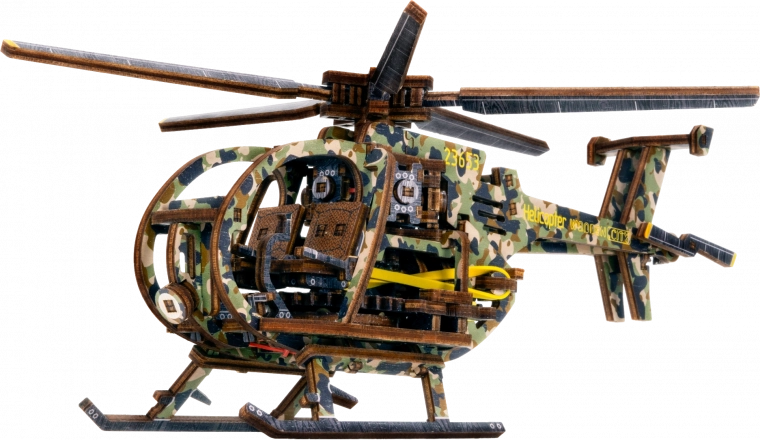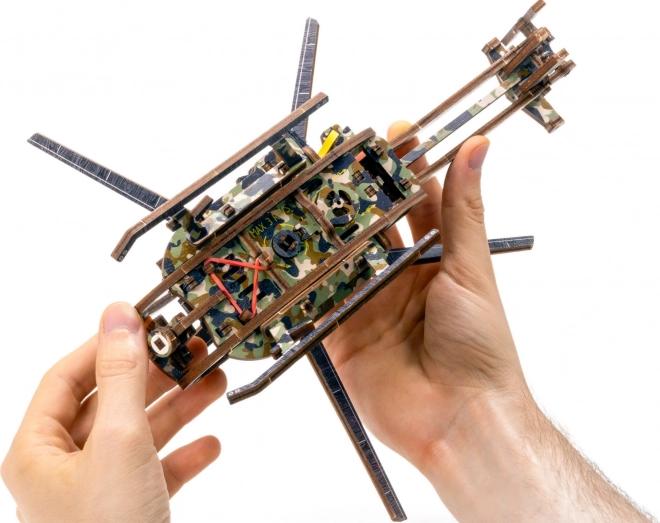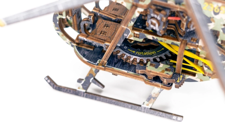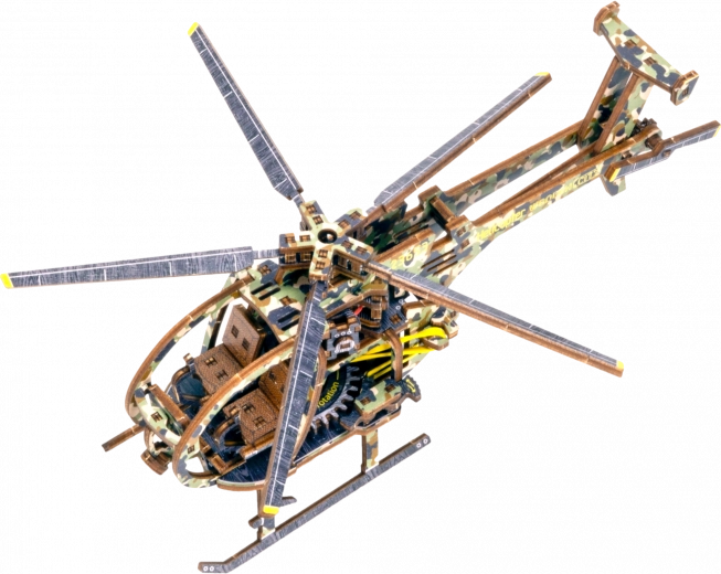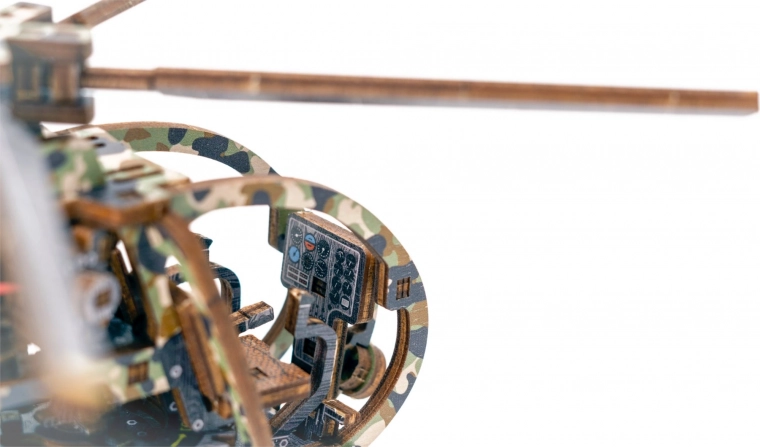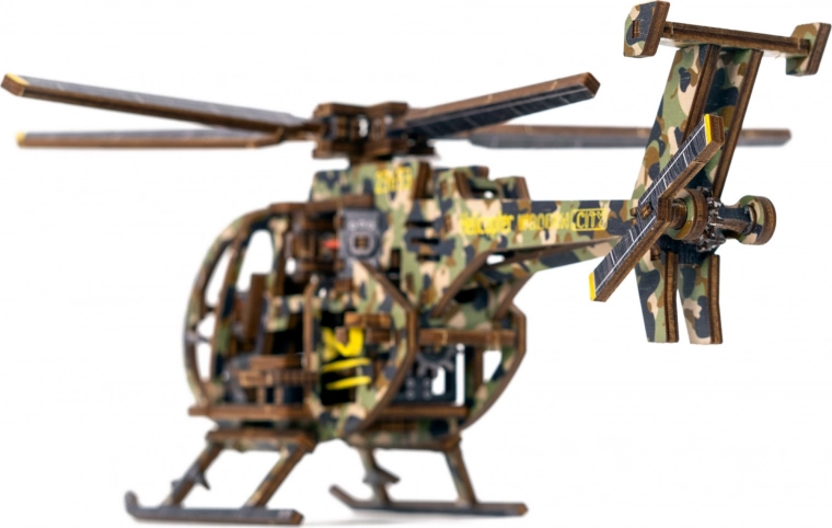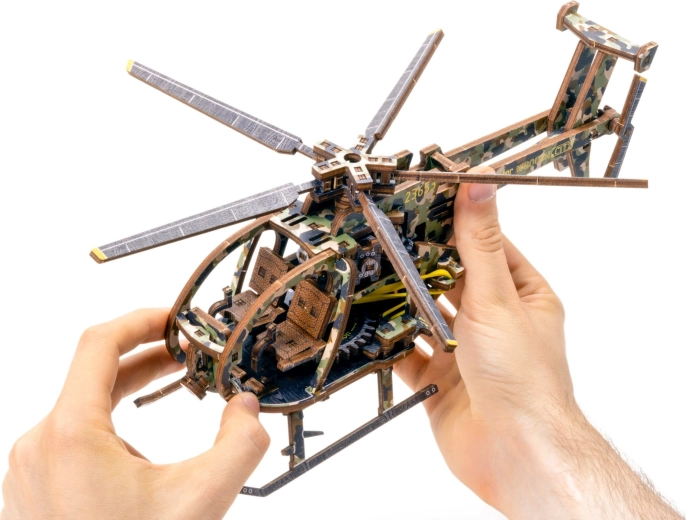 Drewniana mechaniczna układanka wojskowego helikoptera czeka na Ciebie! Dzięki wyjątkowemu designowi i zaskakującym detalom tego modelu spędzisz czas pełen zabawy i świetnych emocji. Właściwości modelu: - wyraziste kolorowe elementy dzięki wysokoprecyzyjnemu nadrukowi UV, - drewniane pudełko służy jako podstawka, - edycja kolekcjonerska. 3D puzzle WOODEN CITY Helicopter będą najlepszym prezentem dla każdego miłośnika lotnictwa.