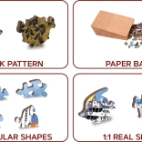 Laserowo wycinane drewniane puzzle WOODEN CITY ze specjalnie ukształtowanymi elementami są niesamowicie wciągające. Część elementów ma kształty zwierząt, budowli lub przedmiotów, a efekt końcowy podkreślają detale uwydatnione laserem. Te elementy mogą samodzielnie stać jako małe figurki. Układanie puzzli z elementami o różnych kształtach jest trudniejsze i stanowi większe wyzwanie niż klasyczne puzzle. Dodatkowo puzzle są dwustronne – można je układać według obrazka (awers) lub według kształtu (rewers z wzorem). Marka WOODEN CITY, poza unikalną koncepcją puzzli, pamięta o ekologii – w tych produktach nie znajdziesz żadnych plastikowych opakowań.