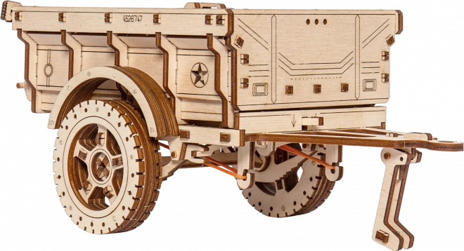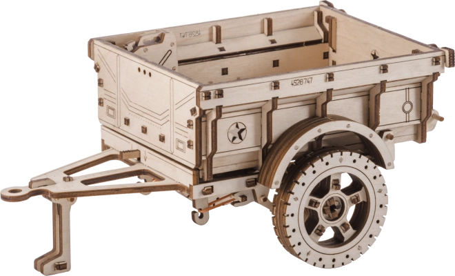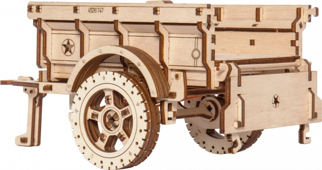 Wojskowa przyczepa WOODEN CITY to stylowa drewniana mechaniczna układanka, która ucieszy każdego miłośnika techniki i modelarstwa. Dzięki precyzyjnemu laserowemu wycinaniu w brzozowej sklejce elementy składają się bez użycia kleju, a montaż jest czysty, szybki i przyjemny. Efektem jest imponujący dekoracyjny model z funkcjonalnymi elementami, który świetnie uzupełni na przykład drewniany samochód typu Jeep 4x4.