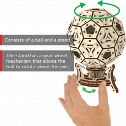 Dlaczego bycie piłkarzem jest takie cool? Przede wszystkim zawsze jesteś w świetnej formie, sport to Twoje życie, jesteś sławny, masz umięśnione nogi i mnóstwo fanek. Brzmi świetnie? Ten wielofunkcyjny 3D organizer jest stworzony właśnie dla Ciebie – niesamowity piłkarski puchar. - można używać do przyborów biurowych - zakręć stojakiem i obserwuj, jak piłka się obraca - wyjmij piłkę ze stojaka i po prostu się baw 3D puzzle WOODEN CITY Football Cup to doskonały prezent dla wszystkich miłośników i fanów piłki nożnej. Trudność: 3 z 5 (wg podziału Wooden City) Orientacyjny czas składania: 2 godziny Drewniane 3D puzzle WOODEN CITY to szczegółowo dopracowane, funkcjonalne mechaniczne modele, które składa się bez kleju i narzędzi. Wykonane są z ekologicznych, drewnianych materiałów – wysokiej jakości sklejki brzozowej. Z mechanicznymi drewnianymi puzzlami WOODEN CITY spędzisz godziny świetnej zabawy podczas składania, poznając z bliska przekładnie, silniki gumowe, zębatki i inne elementy. funkcjonalny model mechaniczny składanie bez użycia kleju i narzędzi wysokiej jakości wykonanie z naturalnego materiału dopracowane detale instrukcja obrazkowa UWAGA: Do złożenia potrzebny jest nóż segmentowy, nożyczki, papier ścierny i świeczka woskowa (nie są częścią produktu). Dla prawidłowego działania i bezproblemowej pracy należy nawoskować osie i zębatki. Wymiary złożonej układanki ok. 15,4 x 11,4 x 11,4 cm