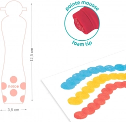 Aplikator gąbkowy dozuje farbę równomiernie, dzięki czemu dzieci mogą kropkować, stemplować i kolorować bez rozlewania i zbędnego bałaganu.