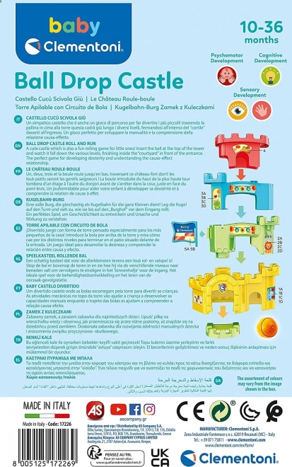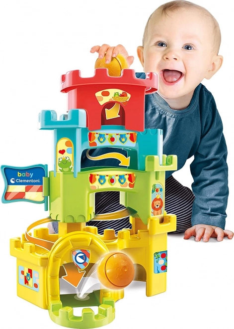 Zbuduj kolorowy zamek i obserwuj, jak piłeczka toczy się po trasie wewnątrz wież i wzdłuż murów. Umieszczenie piłeczki na szczycie wieży uruchamia zabawną jazdę po różnych poziomach – dzieci przy tym naturalnie ćwiczą małą motorykę i koordynację ruchową.