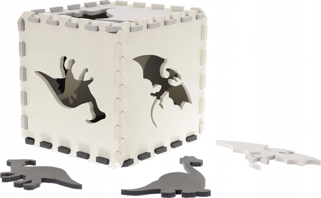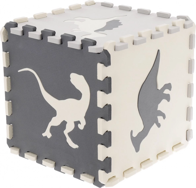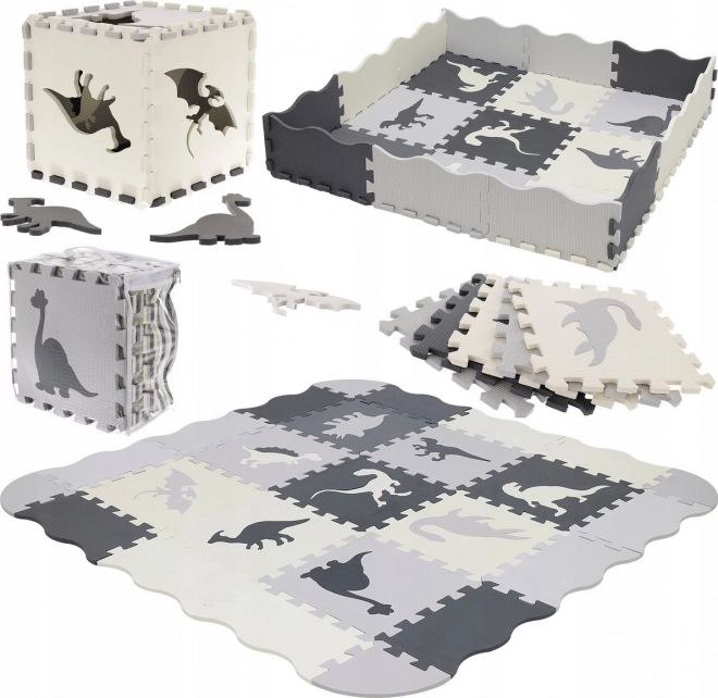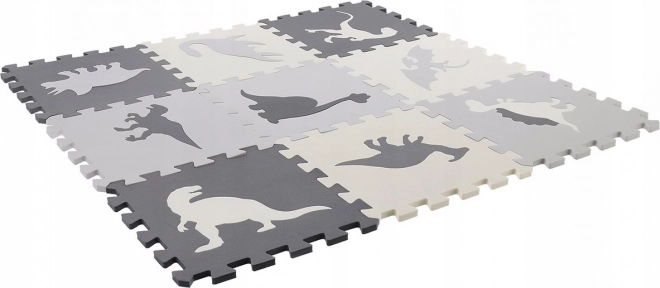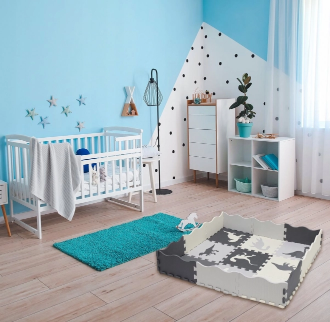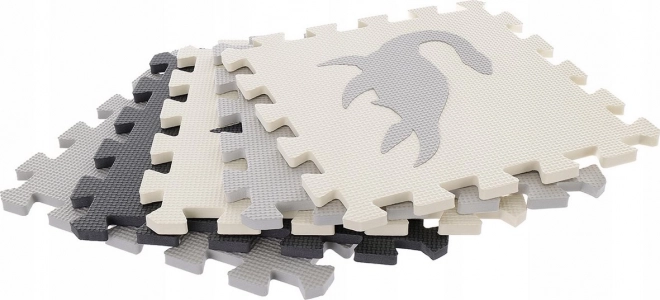 Stwórz dziecku bezpieczny kącik do zabawy z wysokiej jakości piankową matą z motywem dinozaurów w eleganckich odcieniach szarości. Poszczególne elementy łatwo składają się jak puzzle, dodatkowo z wyjmowanymi kształtami, które wspierają motorykę małą i wyobraźnię.
