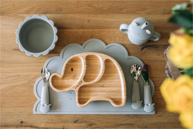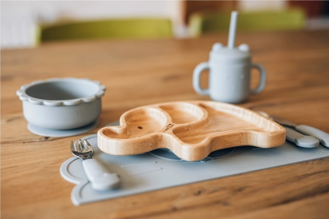 Praktyczna silikonowa mata z motywem lwa w eleganckim szarym kolorze zapewnia porządek podczas jedzenia i zabawy. Dzięki silikonowi do kontaktu z żywnością mocno przylega do stołu, dzięki czemu naczynia i zabawki nie ślizgają się. Jest antypoślizgowa, bezpieczna dla dzieci (bez BPA, PVC, lateksu i ftalanów), łatwa w czyszczeniu i można ją myć w zmywarce – idealna w domu i w podróży.