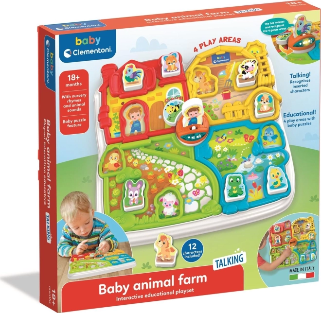 Interaktywna farma oferuje cztery różne obszary – gospodarstwo, stajnia, ogród i staw. Zawiera także wstawkę z 12 elementami, które dzieci mogą używać jako figurki podczas innych zabaw. Obracająca się pszczoła wokół mostu dodaje kolejny element zabawy.