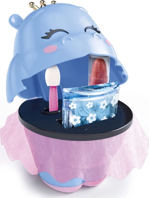 Uroczy dziecięcy zestaw do makijażu CLEMENTONI CRAZY CHIC w kompaktowym pudełeczku hipopotama-baletnicy ze złotą koroną ucieszy wszystkie małe elegantki. Oferuje delikatne odcienie dla naturalnego, zawsze modnego wyglądu oraz wszystko, co potrzebne: cienie do powiek, pomadkę i aplikator. W zestawie znajduje się instrukcja, a inspirację można czerpać także z tutoriali online. Dzięki wymiarom 7,5 × 6 × 8 cm zmieści się do plecaczka i na półkę, a do tego należy do kolekcjonerskiej edycji z młodymi zwierzątkami.