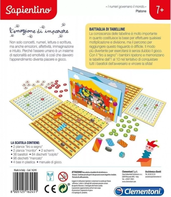 Bitwa Tabliczki Mnożenia od Clementoni to zabawna gra planszowa, która w atrakcyjny sposób poprawia zdolności w mnożeniu u dzieci, przypominając klasyczne gry jak statki czy bitwa morska.